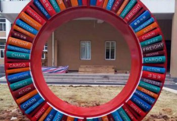 圓環雕塑相當于一個空心的圓,空心圓擁有一個小半徑,整個圓有一個大半徑,整個圓的半徑減去空心圓半徑就是環寬。生活中的例子有空心鋼管,甜甜圈,指環,游泳圈等,截取圓環雕塑一部分的叫扇環。圍繞一個點并以一定長度為距離旋轉一周形成的封閉曲線叫做圓。