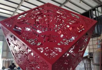 正方體雕塑作為裝飾性雕塑是城市雕塑中數(shù)量比較大的一個類型,這一類雕塑比較輕松、歡快,帶給人美的享受,也被稱之為藝術(shù)雕塑小品。這種雕塑的鏤空圖案可以是各種文字,具體文字內(nèi)容根據(jù)雕塑的主題確定。