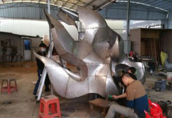 在制作篝火不銹鋼雕塑之前需要先制作模型,一般使用泡沫制作,制作好模型以后要在模型上刷石膏,使其硬化,以方便制作不銹鋼造型,使用2毫米厚的201或者304不銹鋼板制作,因為表面是烤漆效果,很多廠家在制作的時候焊點很稀,這樣可以節省成本,但是這樣做,雕塑的使用壽命會受到影響,我們制作的時候焊點會做的很密。