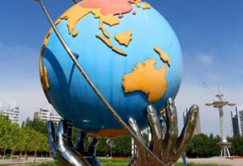 地球儀雕塑象征著放眼世界,象征著胸懷世界,象征著走向世界。并以一定的空間體里的方式存在而構成可視、可觸、可感、可知的造型藝術。不銹鋼地球儀雕塑是仿制地球的形狀,按照一定的比例縮小制造而成的。不銹鋼地球儀是地球的模型,
